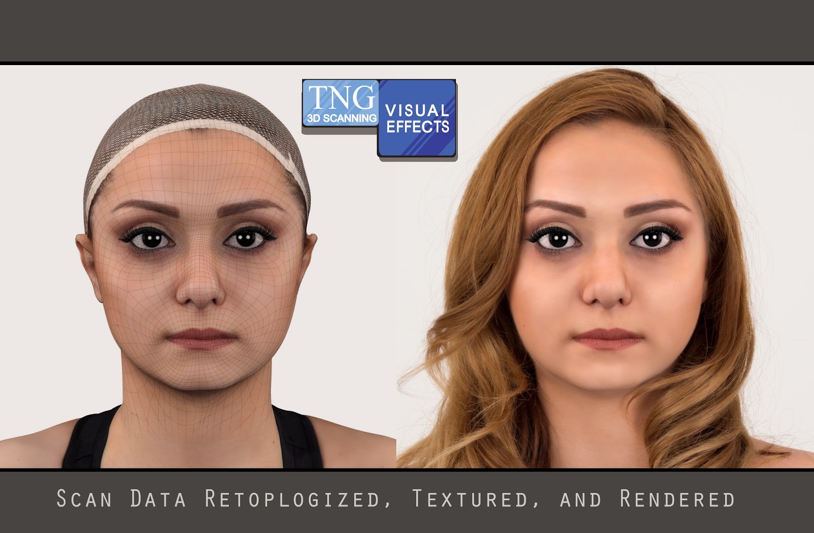 Here is Melika again with the cleaned up scan on the left and our finished model on the right. We used her original hair in the texture shoot. We're still working on cyber hair. #3DScanning