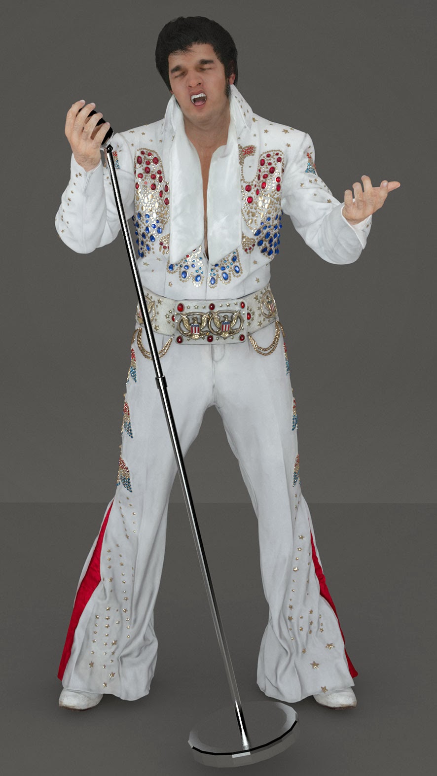 Check out our digital double we created using an Elvis impersonator. http://blog.tngvisualeffects.com/elvis-presley-for-halloween/