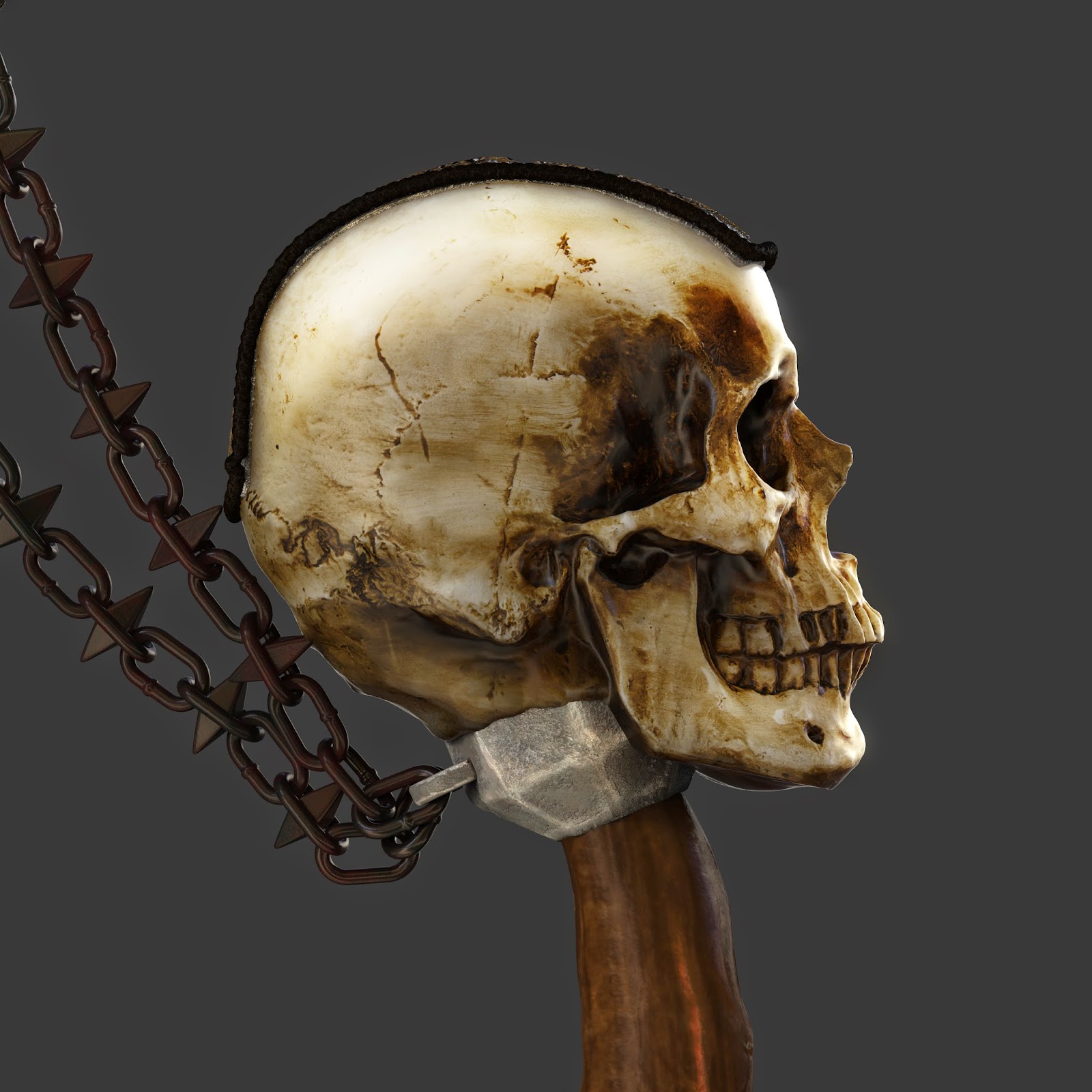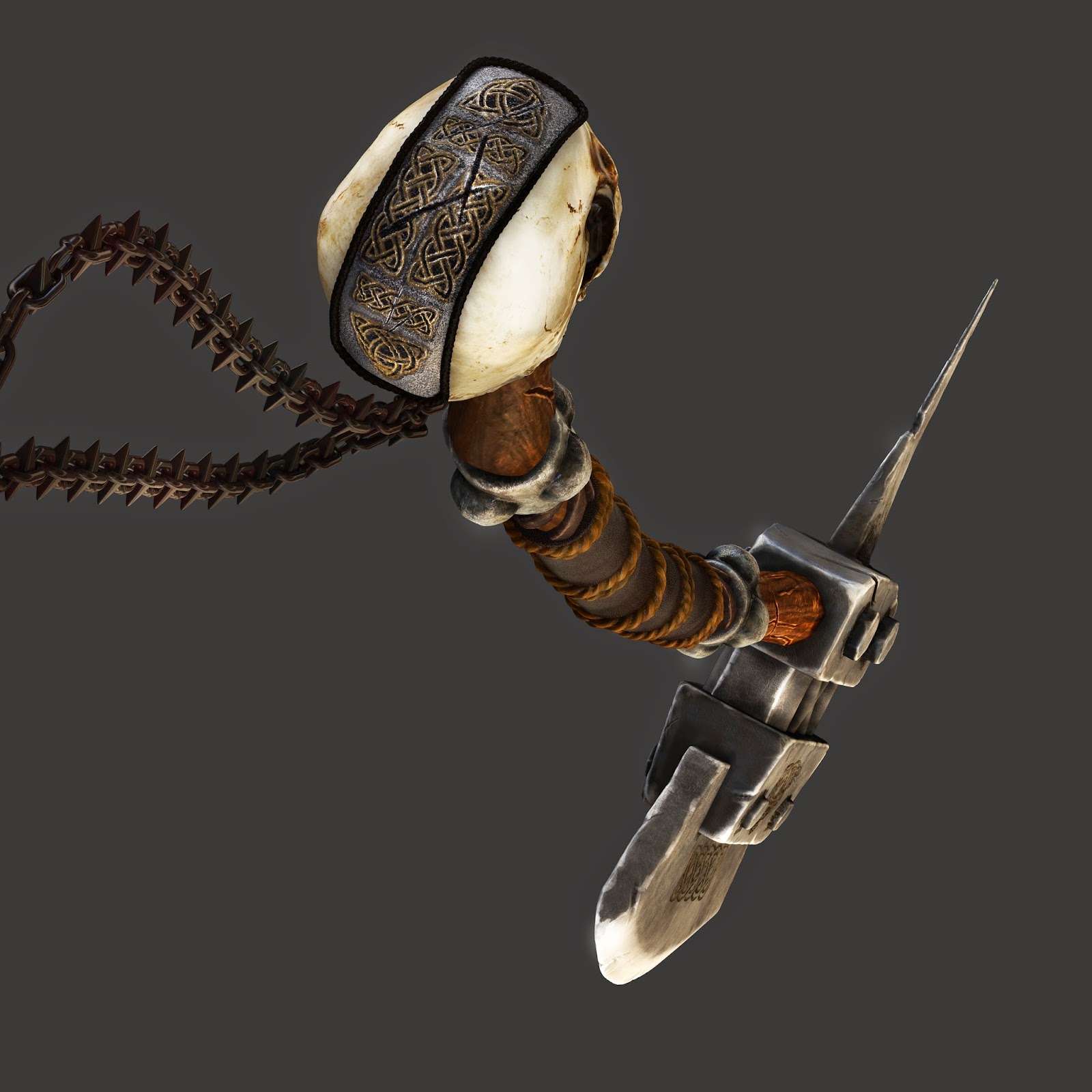 Here are a few more renders of the skull axe we've been working on. Still not a final version but it's getting there.